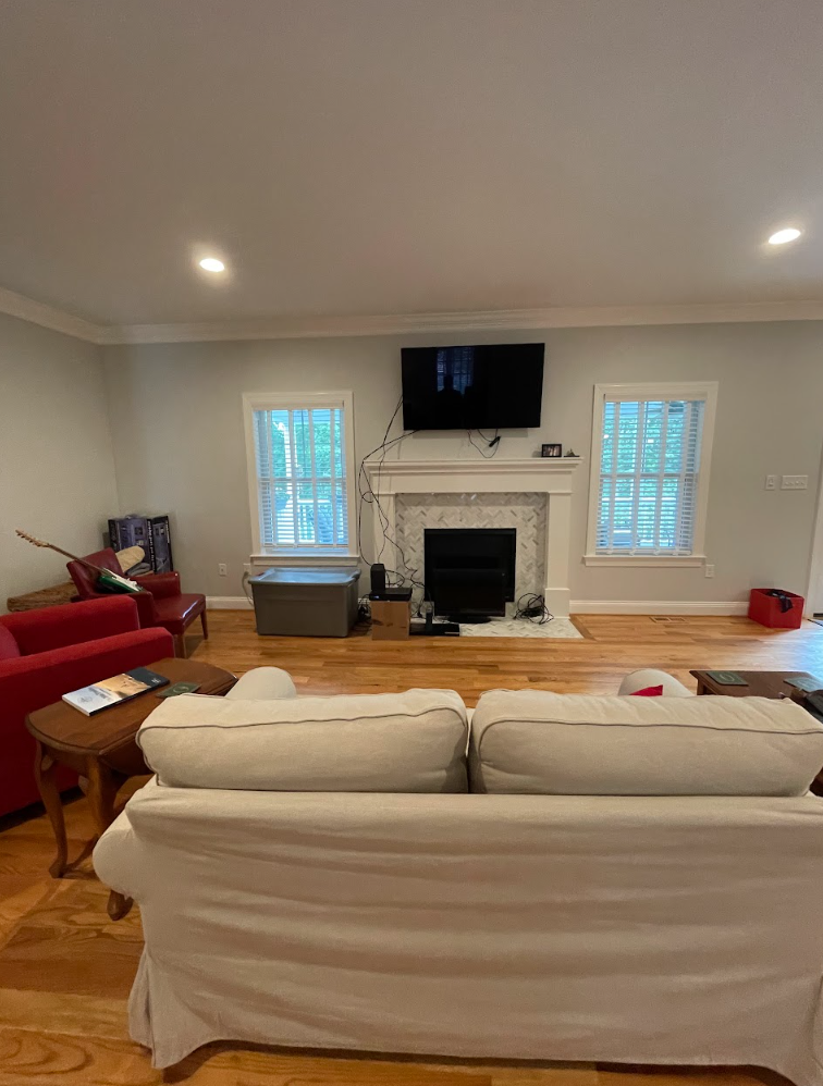 But first we studied how to use the rooms. The room directly off the front entry could have been furnished as a dining room or a sitting area, even having been outfitted with a chandelier by the previous owner. The large kitchen and great room area in the rear of the house also had space for a table and chairs.
